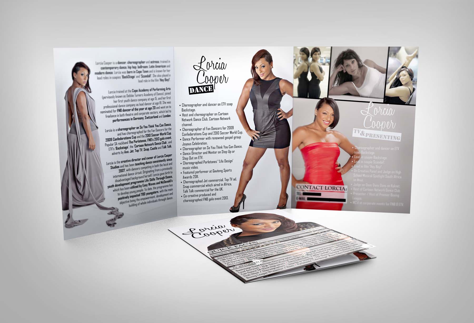 Lorcia Cooper – PresskitPrevNextPresskit compiled & designed for Lorcia Cooper, a well-known South African actress and ex-judge on So You Think You Can Dance SA. Layout Design, Photoshop, Copywriting301.6 K