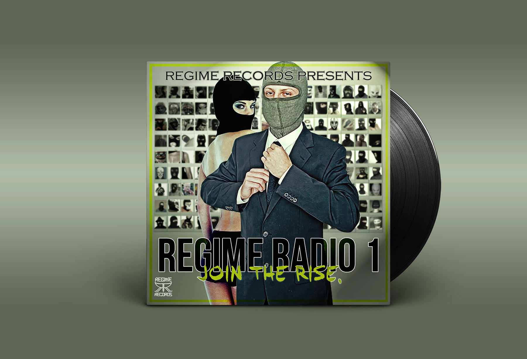 CD artwork designed for the first installment of Regime Records’ mixtape series, titled ‘Regime Radio 1: Join The Rise’.